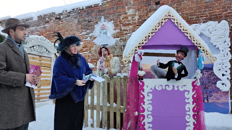 На улице мороз, но, несмотря на суровый атмосферный минус, во дворе зеленого дома на Большой Казанской людно и весело. Светлана Крупина, Денис Демьянов и дружная команда активистов, ратующих за восстановление здания с историей, придумали оригинальную новогоднюю программу с народным театром-вертепом, играми и хороводами, экскурсиями по старинному дому рыбинского фотографа XIX века Евгения Сигсона, сын легендарного Андрея Сигсон а.