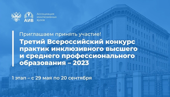 Третий Всероссийский конкурс практик инклюзивного высшего и среднего профессионального образования – 2023 приглашает принять участие.