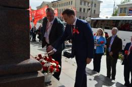 Затем участники семинара-совещания торжественно возложили цветы к памятнику Владимиру Ильичу Ленину и памятнику «Борцам революции 1905 года». Кстати, 15 мая исполнится 118 лет со дня создания первого в России Совета рабочих депутатов, его создали именно бастующие ивановские текстильщики под руководством большевиков.