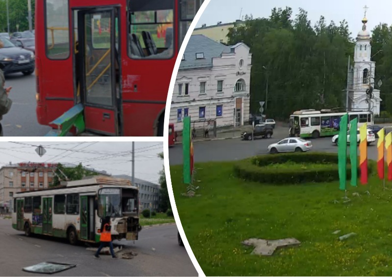 На Октябрьской площади в Ярославле столкнулись автобус и троллейбус
