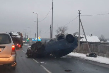 В Ярославской области на дороге перевернулась машина. Видео