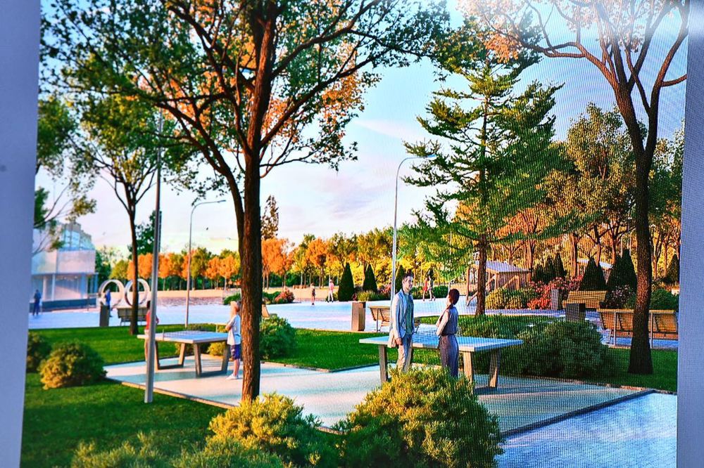 «Центральным местом парка останется пруд. Берега покроем деревянным настилом, таким образом создадим комфортное место отдыха у воды. Также в парке обновим сцену, добавим освещение, заменим плитку и клумбы. Учли пожелания юных жителей района — в парке появится большой игровой комплекс, качели и теннисные столы», — рассказал глава города.