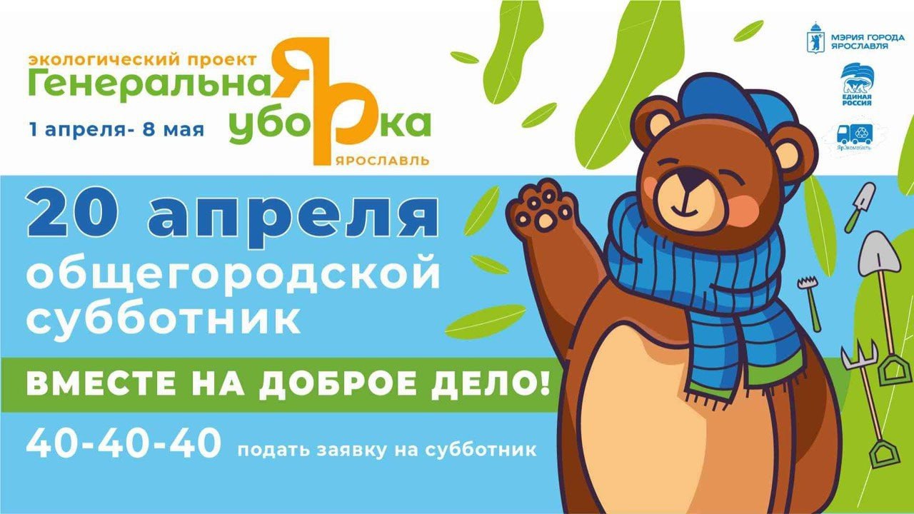 20 апреля на территории Ярославля пройдёт общегородской субботник. В городе определены традиционные площадки в каждом районе. В этот год предполагается участие до 20 000 ярославцев.