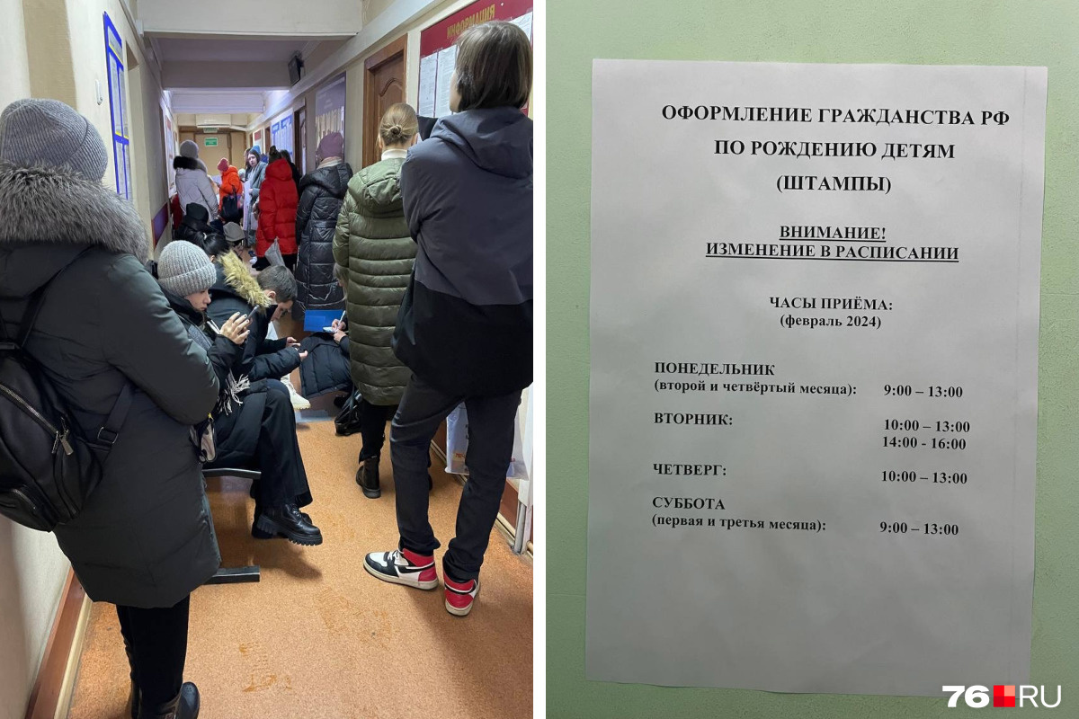 — Детям 2008–2009 годов рождения не ставили отметки о гражданстве. Теперь без этой бумажки не могут принять документы на паспорт. Нужно занимать очередь в паспортный стол в 6 утра, — написал в редакцию 76.RU Николай.