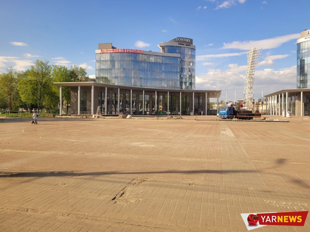 Одна из двух башен многофункционального делового центра на площади Труда все никак не может достроиться. Забор здесь убрали, и работы по строительству возобновились.