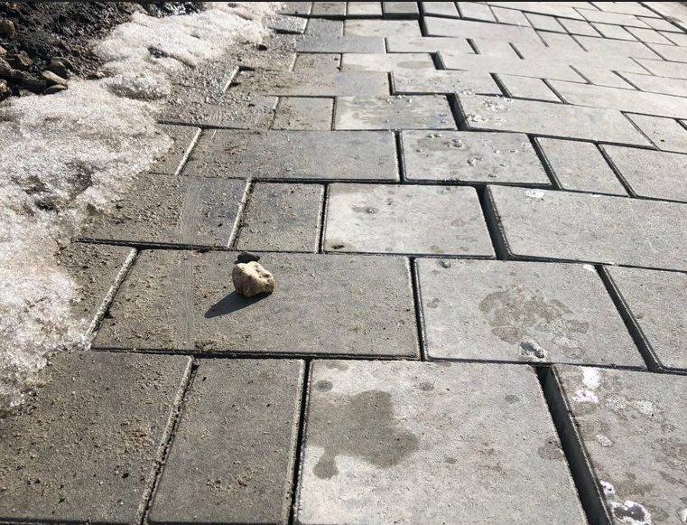 По ширине тротуаров судить не беремся, вот плитку на фото реально вспучило. А кое-где она провалилась. Остается надеяться, что гарантийные обязательства действительно имеются, и к укладчику плитки они будут своевременно предъявлены.