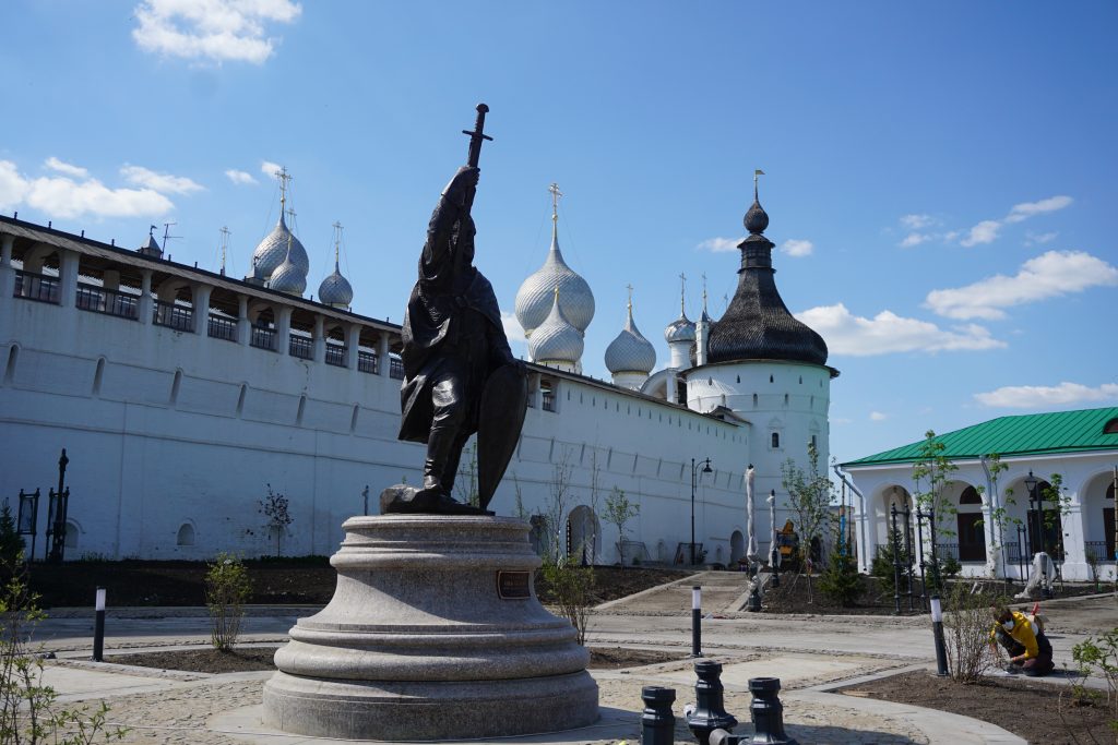 В конце мая в центре нового сквера установили памятник князю Василько. Реализация проекта по благоустройству территории с восточной стороны Кремля стала возможна благодаря победе городского поселения Ростов в VII Всероссийском конкурсе лучших проектов создания комфортной городской среды в малых городах и исторических поселениях с проектом «Благоустройство исторической части города Ростова». В прошлом году здесь был закладной камень, установленный и торжественно освещенный в 1995 году. Теперь на площади красуется величественная скульптура святого князя Василько.