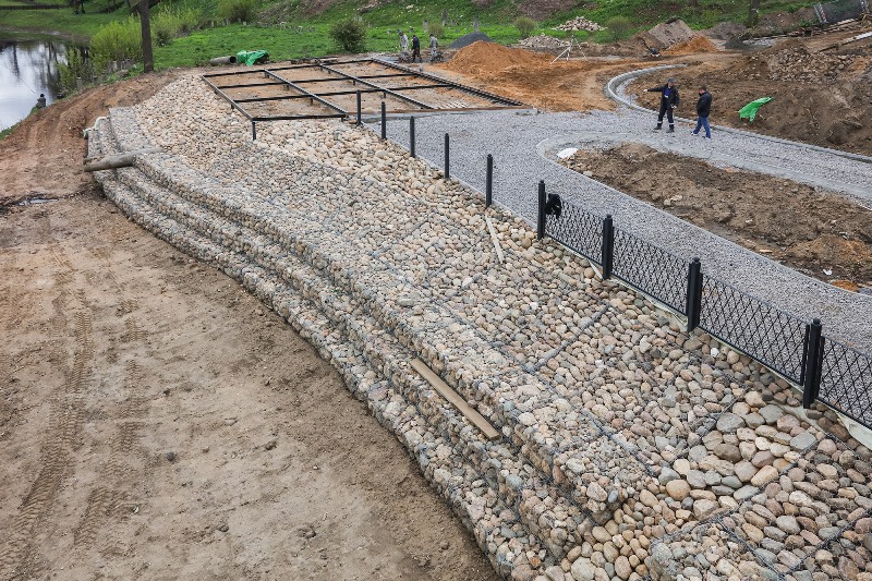 Основная часть работ уже выполнена, продолжается обустройство территории под мостом, где расположена зона для молодежного отдыха, и берег возле сквера, где строят смотровую площадку.