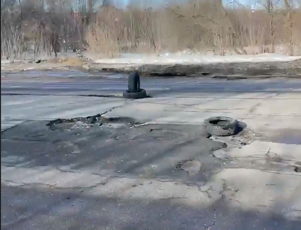 Активист граппы «Дороги Ярославля» Темур Абдуллаев заметил покрышки на проезжей части Мышкинского проезда в Ярославле. Дорога проходит в Кировском районе города, и ямы здесь такой глубины, что водители решили выставить своеобразный народный знак с предупреждением об опасности. Тем более, что итогом ДТП может стать не только пробитое колесо.