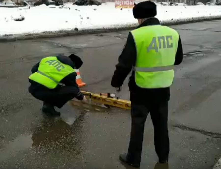 В Ярославле сотрудники ГИБДД измерили ямы на проспекте Машиностроителей