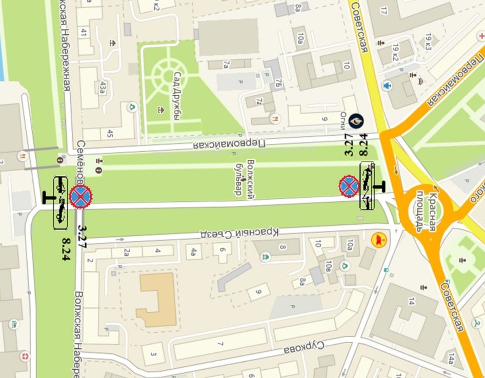 Речь идёт о временном ограничении остановки и стоянки транспорта на участке от Красной площади до нижнего яруса Волжской набережной. В мэрии пояснили, что ограничения вводятся для обеспечения «необходимого уровня безопасности дорожного движения и пропускной способности».