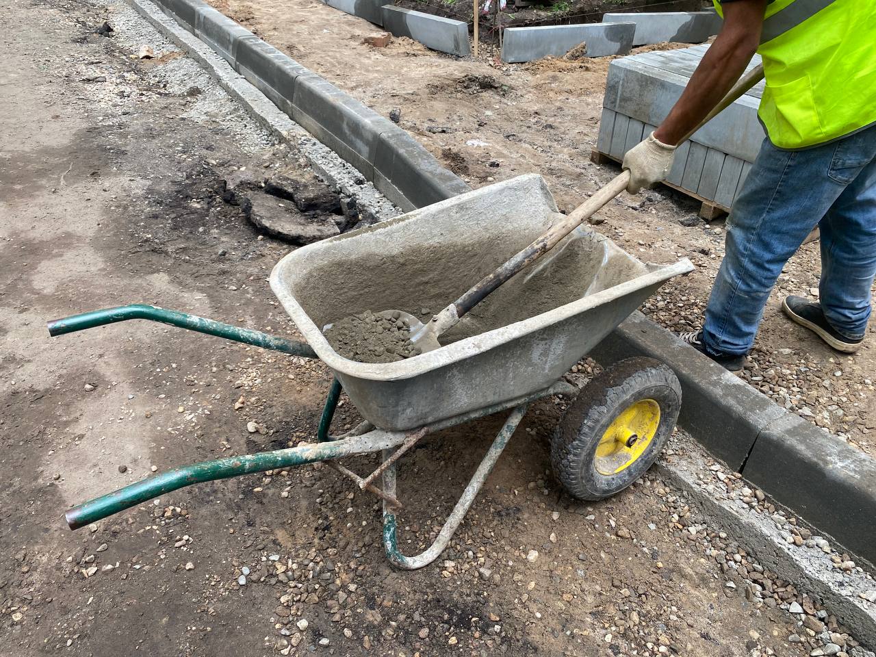 — Работаем каждый день, подстраиваемся под погодные условия. Сейчас ведется установка бортового камня, в скором времени будут исполнены подходы к подъездам. График работ разбит на два года, но в этом году основную часть работ выполним — сделаем входные группы, тротуары и проезды. Тротуары будут выполнены в плитке, на проезжую часть в два слоя будет уложено асфальтовое покрытие, — сказал заместитель директора подрядной организации Александр Ерохин.