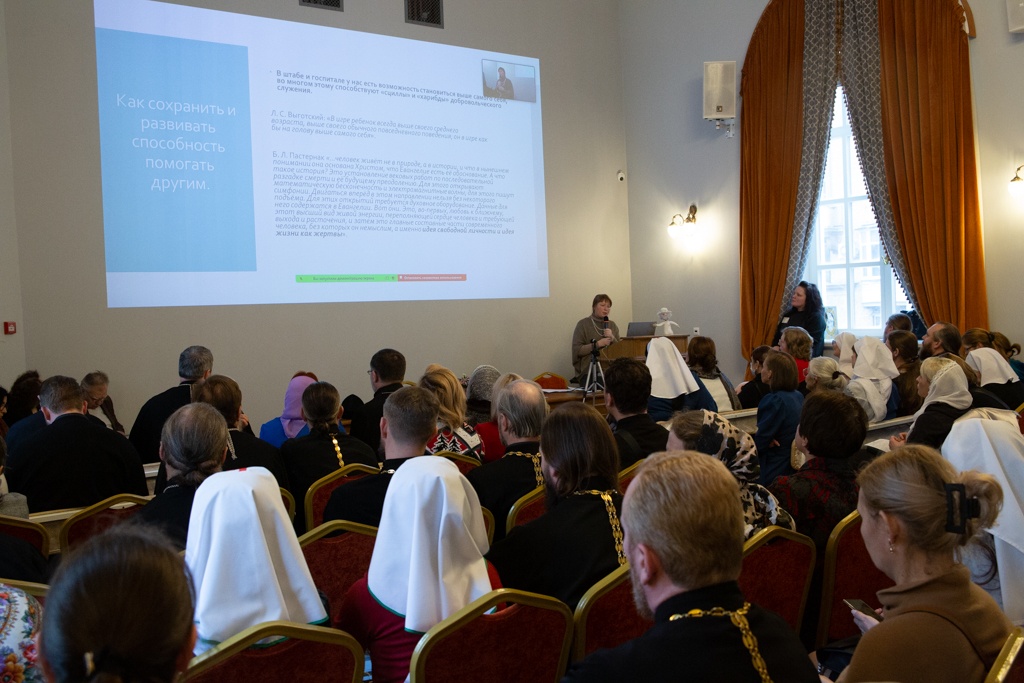 В этом году основной темой ежегодных секций «Больничное служение» и «Сёстры милосердия» стала помощь военнослужащим и мирным жителям, пострадавших в ходе СВО. Перед собравшимися выступил Захаров А.Ю., директор и главный врач Больницы Святителя Алексия, и поделился опытом оказания помощи мирным жителям на территории пострадавших городов Донбасса и Украины, также в рамках секции «Больничное служение» рассматривались актуальные вопросы: «Организация служения госпитальных священников и добровольцев», «Как помочь, не будучи психологом: что можно делать, а от чего воздержаться», » Посттравматическое стрессовое расстройство».