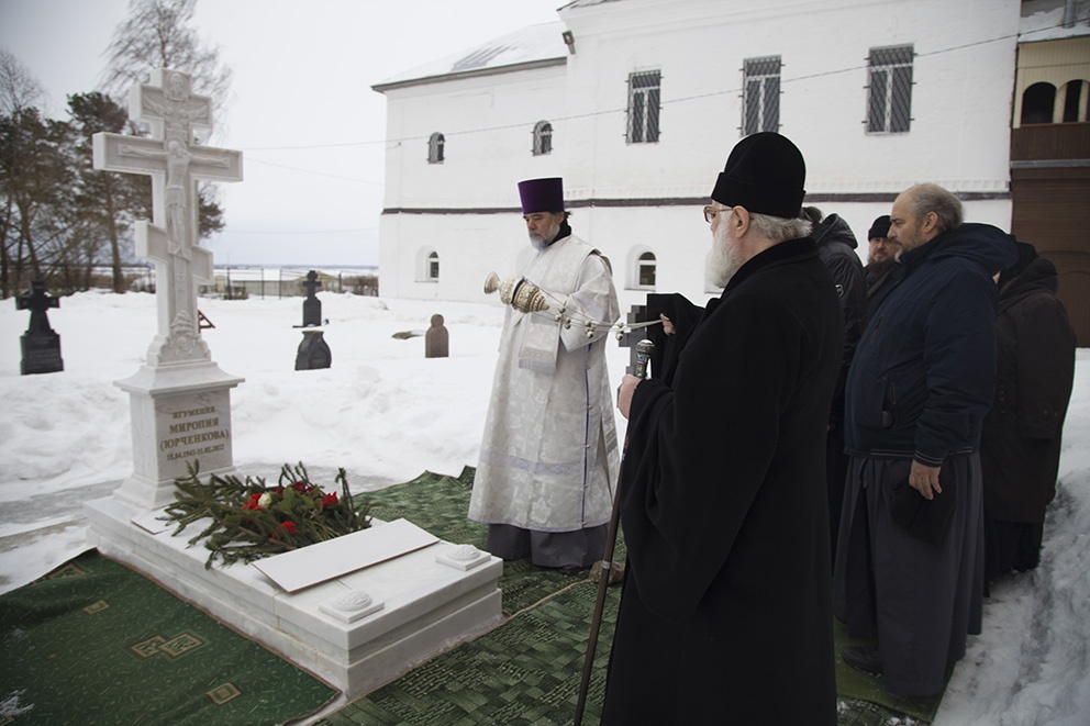Игумения Миропия (Юрченкова) отошла ко Господу 11 февраля 2022 года. Матушку похоронили за алтарем Богоявленского собора обители.