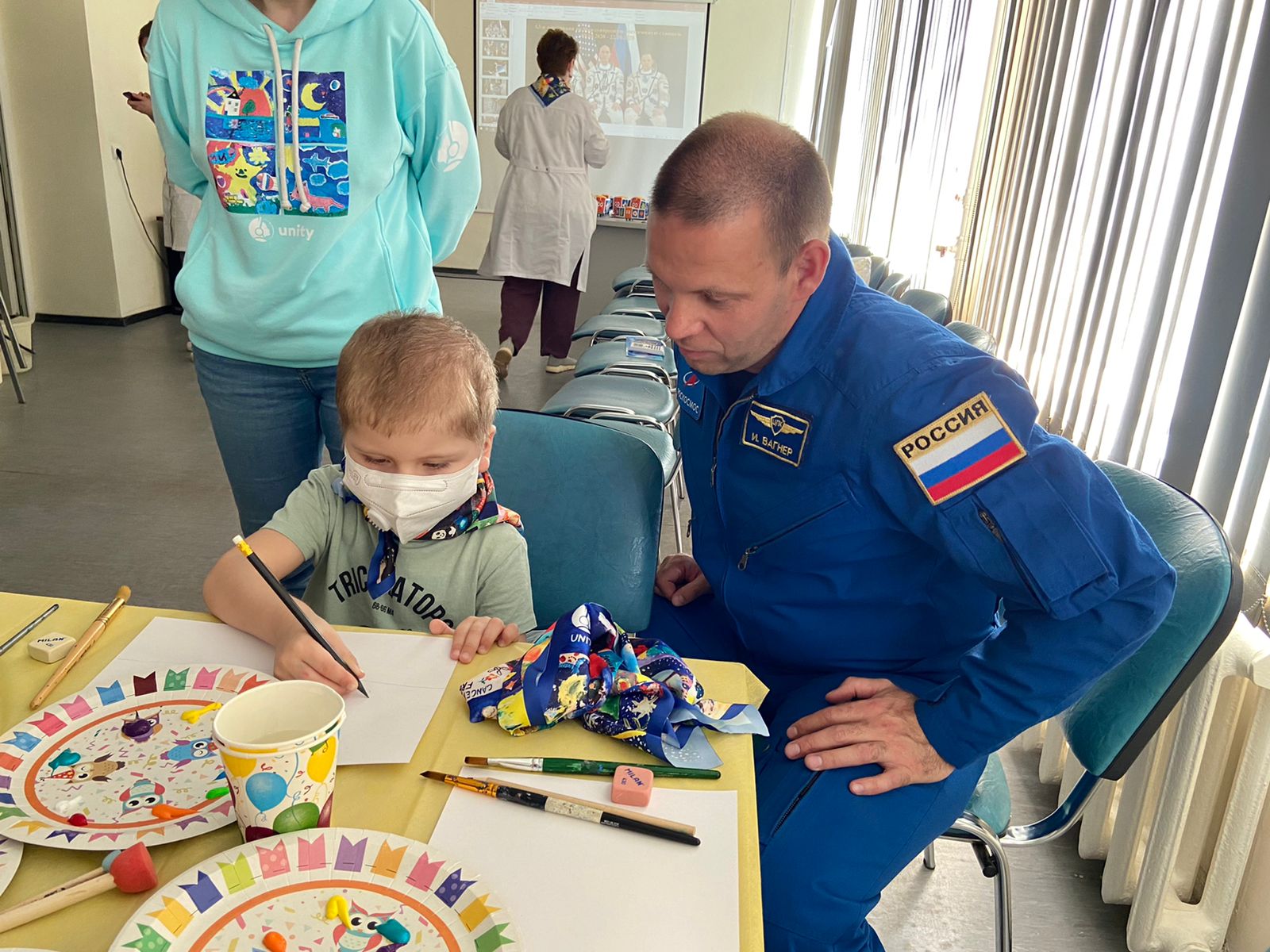 Команда благотворительного фонда «Uniti» вместе с Героем России, летчиком-космонавтом РФ Иваном Вагнером навестила пациентов отделения онкологии, гематологии и химиотерапии областной детской клинической больницы в Ярославле. Ребята передали гостям рисунки, в которых отразили свои заветные мечты.