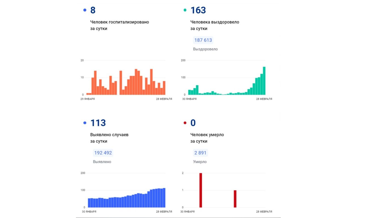 В Ярославской области продолжает расти заболеваемость коронавирусом. По данным федерального оперштаба по коронавирусу на 28 февраля, в регионе за сутки выявили 113 заболевших. 8 человек за это время госпитализировали. Вылечили и выписали еще 163 ярославцев.