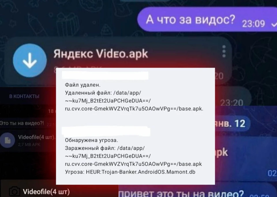 Вирус распространяется через мессенджер Telegram в виде файлов с расширением .apk. Как правило, файлы присылают с просьбой подтвердить, присутствует ли получатель на каком-либо видео.