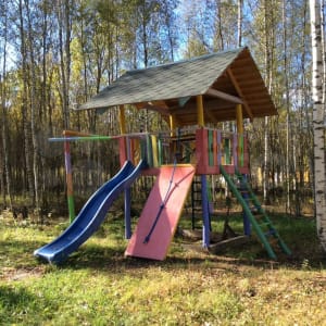 Не остались без внимания и наши маленькие гости. Уличная детская площадка привлекает детей, так как здесь можно весело провести время. Игры на площадке положительно влияют на физическое и психическое развитие ребёнка. Горки, канаты, верёвочная лестница, качели – то, что нужно. Батут в диаметре 4 метра.